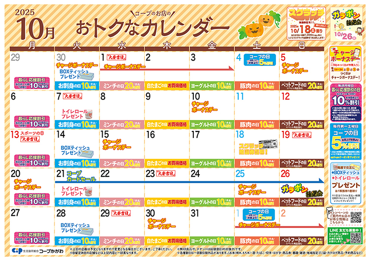 コープのお店2025年10月のおトクなカレンダーを公開いたしました。