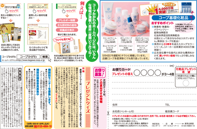 ■index■ 〜毎月第1土曜日は〜コープの日/るんるんクッキング 2010年度6月環境月間の取り組み/食べるたいせつキッズクラブ2010年度メンバー募集/エコについてQ&A この人クローズアップ/みんなのひろば/コープ基礎化粧品/プレゼントクイズ お便りカード/編集後記 1・2・3・4 page