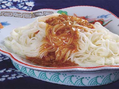【材料】(4人分) そうめん……………………4束 麻婆豆腐の素……………………… 2P 【作り方】 @そうめんを湯がいておく A麻婆豆腐の素を温めて、@のそうめんにかける。 |